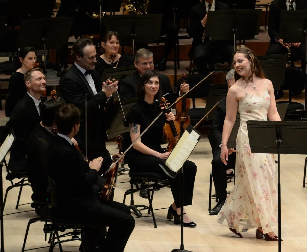 La soprano norvégienne Annika Synnøve Beinnes sous les applaudissements du chef Sascha Goetzel. © PHOTO CO Jérôme HURSTEL