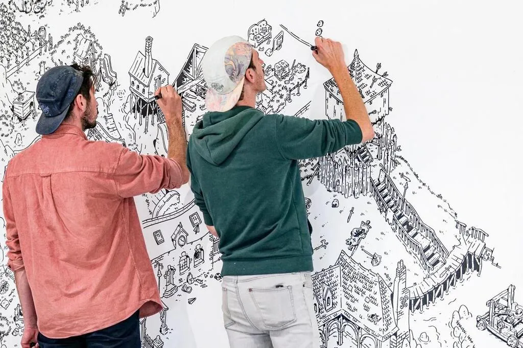 Dupin et Duclos ont réalisé une fresque pour les 100 ans de la foire. Cette dernière sera visible au prochain rendez-vous, d’ores et déjà fixé en avril 2025.