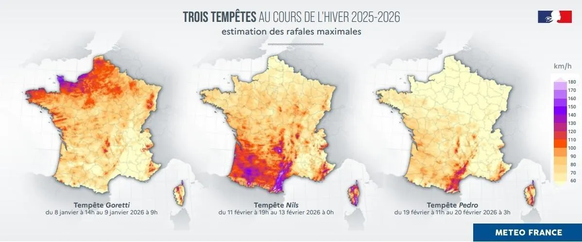 Goretti, Nils et Pedro ont été les trois tempêtes majeures de l’hiver 2025-2026 en France. METEO FRANCE