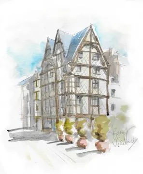 La célèbre maison angevine vue par notre aquarelliste Benoît Vieillard. © Ouest-France
