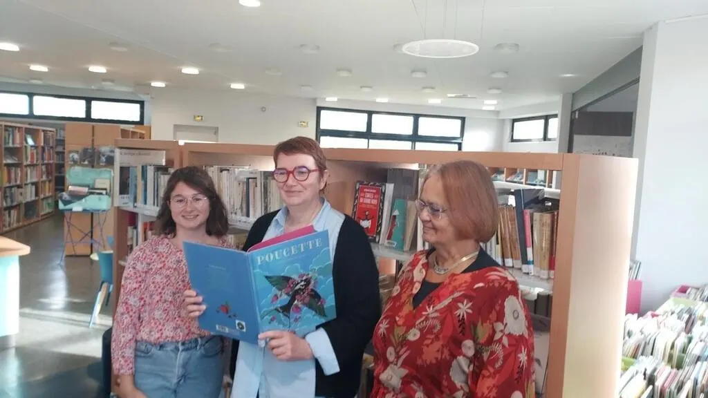 Il y a un an, en novembre 2023, Catherine Cottet (au centre) et Amandine Meurgues (à gauche) présentaient le nouveau Rézokili auquel adhérait la médiathèque. Elles recevaient alors Catherine Ridé, l’animatrice bénévole du Festival du conte et des arts du récit en novembre 2023. © Archives Ouest-France