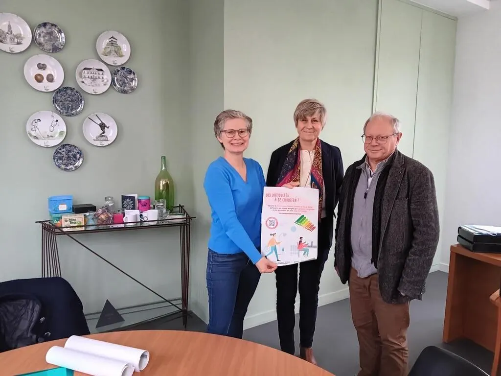 Stéphanie Hervieu de l’Aura, Geneviève Stall, maire de Verrières et Jean-Pierre Mignot, maire délégué de Pellouailles-les-Vignes. © Ouest-France