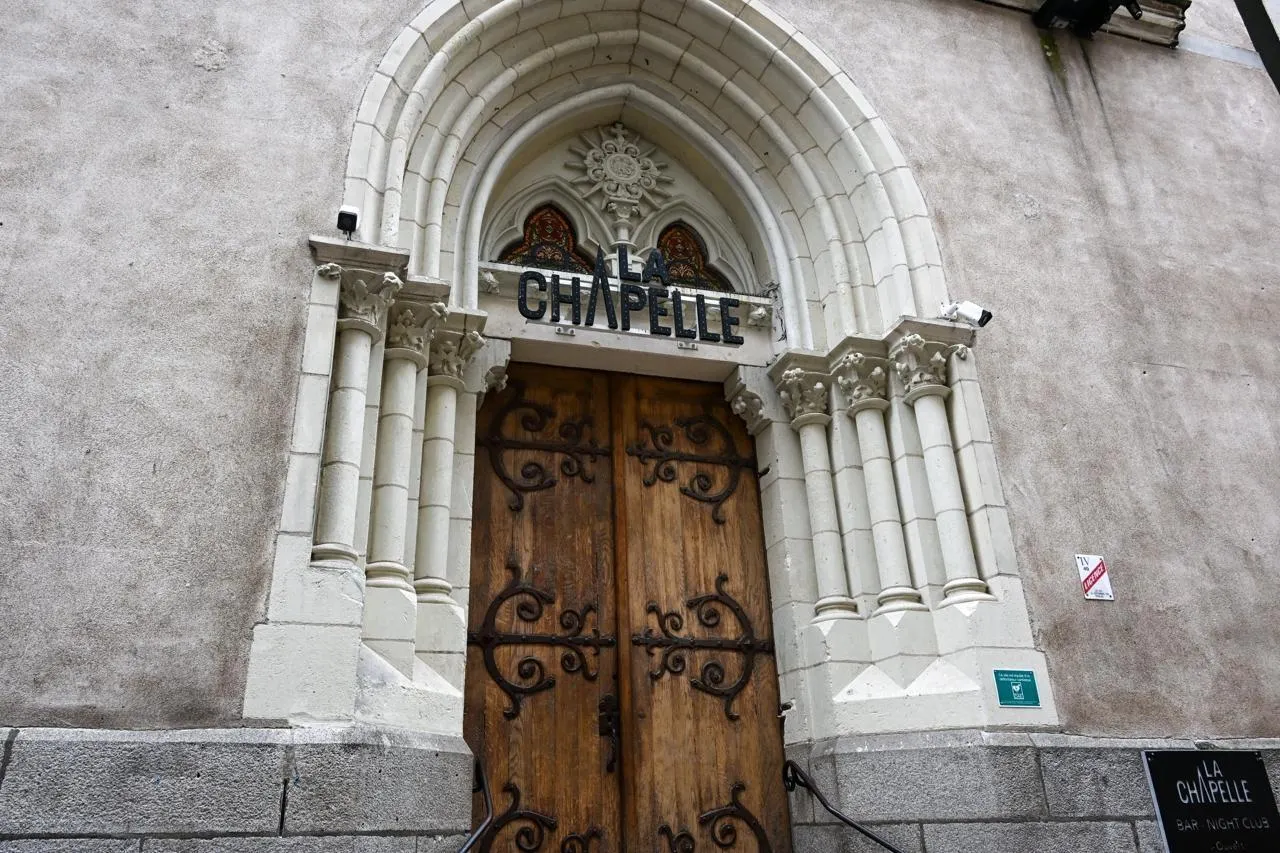 L’entrée de La Chapelle, rue Cordelle, près de la place du Ralliement. Cette discothèque construite au XIXe siècle par la communauté des servantes du Saint-Sacrement est sans équivalent en France. © CO - Laurent COMBET