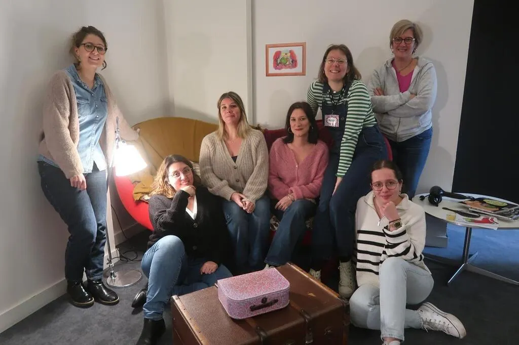 Mazé, le 7 février 2025. L’équipe de La Bulle presque au complet (il ne manque que Julien), en compagnie de l’adjointe Laure Lemallier. © CO – Agathe LE NUEFF