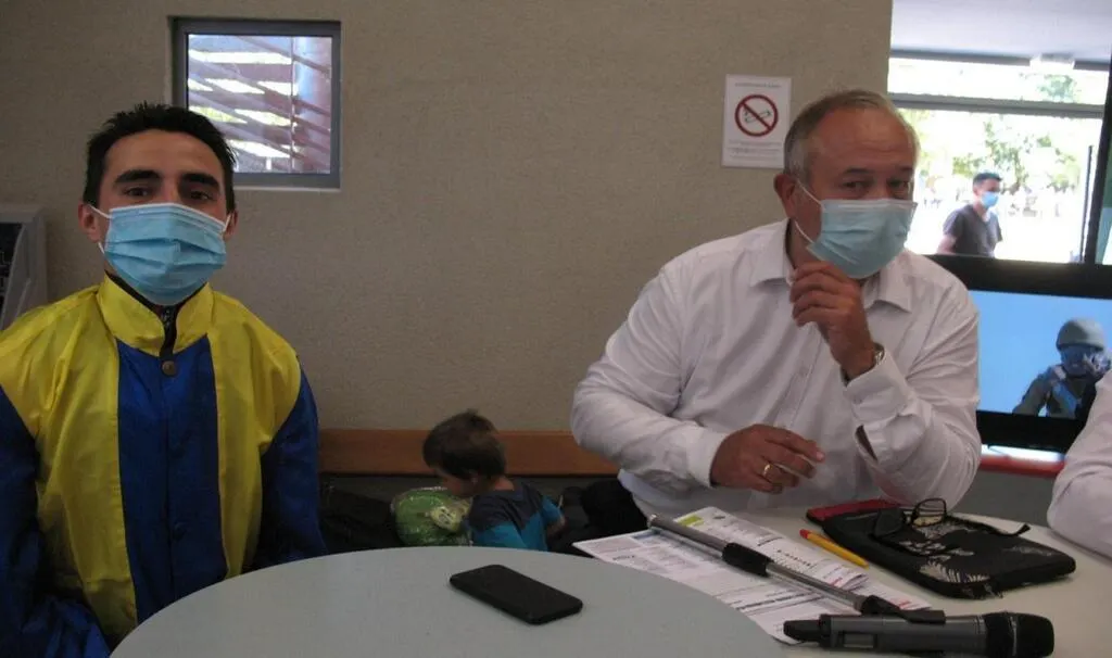 Le Lion-d'Angers. Les jockeys au micro de Patrick Gratz... |