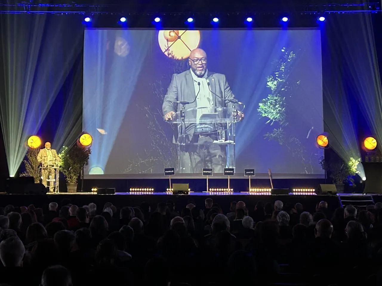 Lamine Naham, maire de Trélazé, à présenté ses vÅ“ux à la population jeudi à Arena Loire. © CO