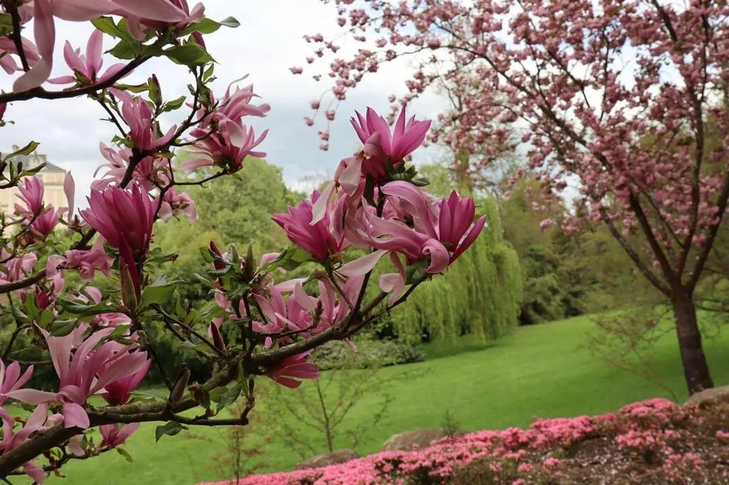 Le parc oriental de Maulévrier fête ses 40 ans en ce printemps, où les azalées et les cerisiers offrent des nuances du rose au mauve. © Ouest-France