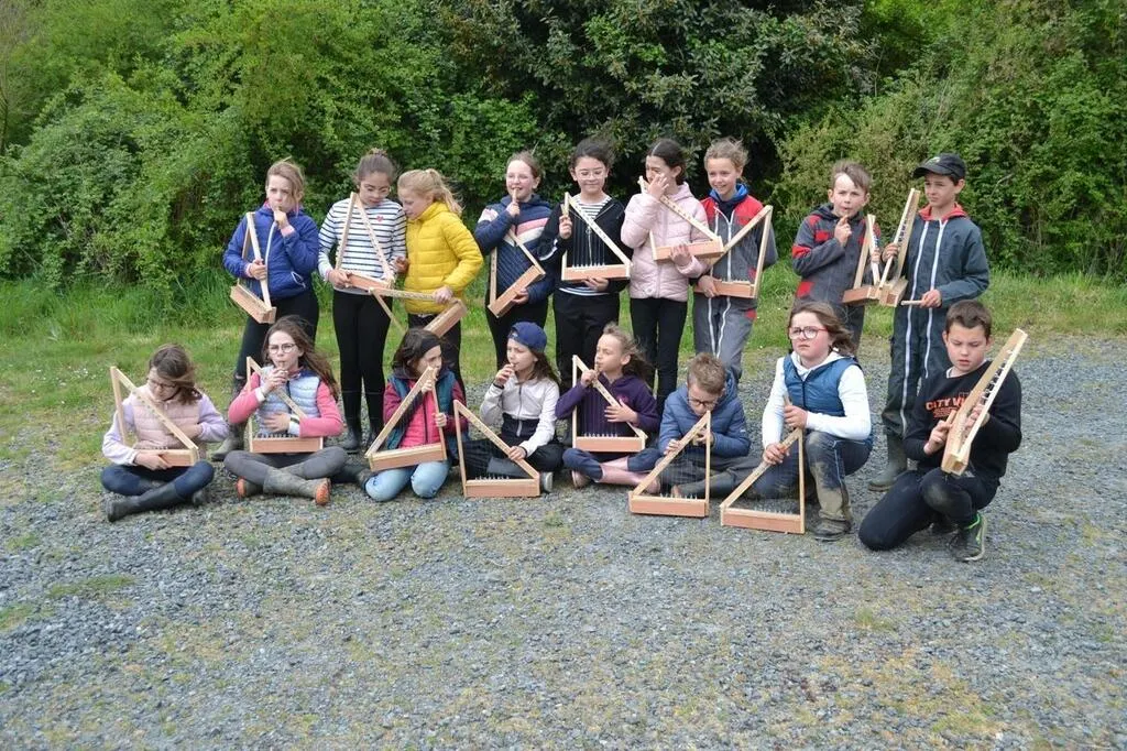 La suite a été musicale avec la fabrication d’une harpe grâce à quelques baguettes de bois et du fil de pêche. Les jeunes harpistes se sont essayés à quelques arpèges.