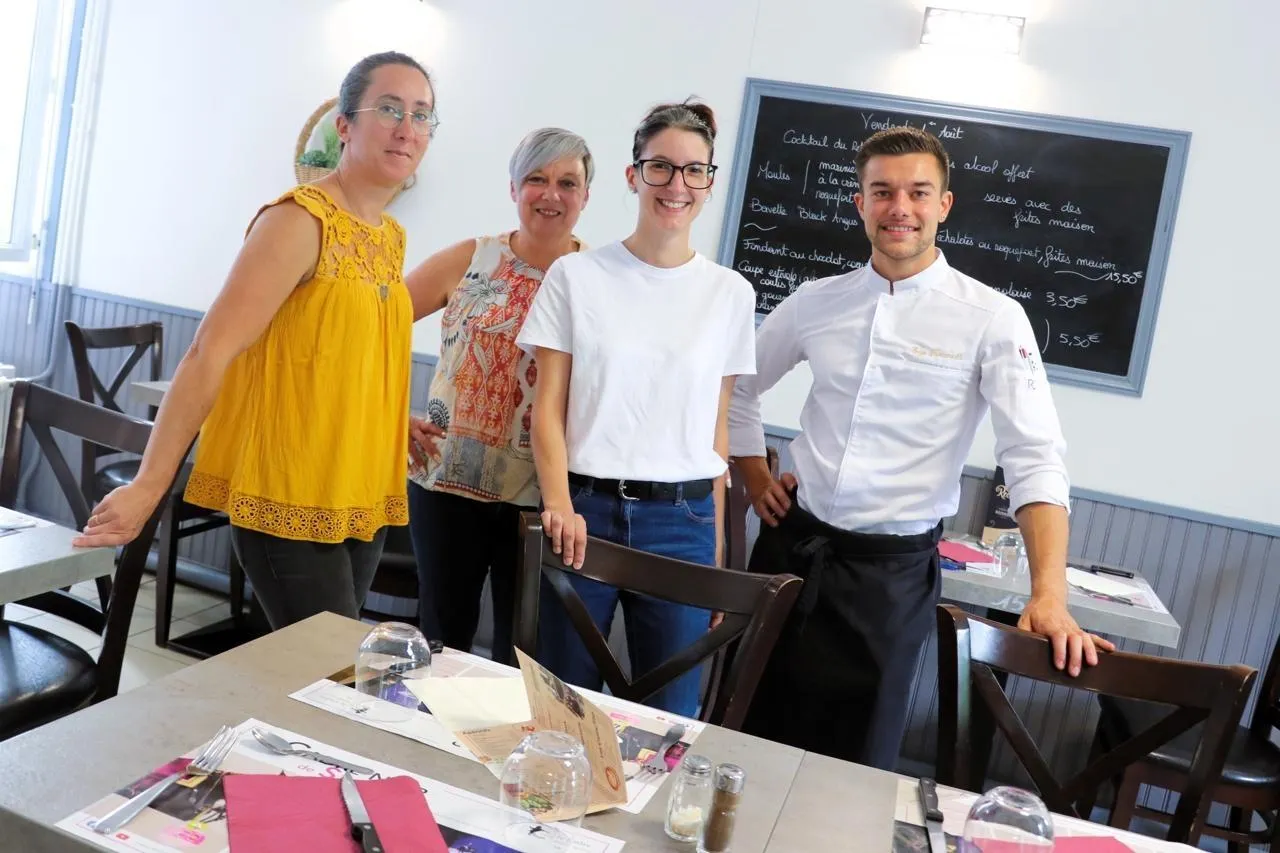 Longué-Jumelles, vendredi 1er août 2025. Émilie, Sandrine, Delphine et Enzo se donnent du mal en salle et en cuisine, pour satisfaire les clients du Relax. © CO – Matthieu GRUAZ-TOUSSAINT