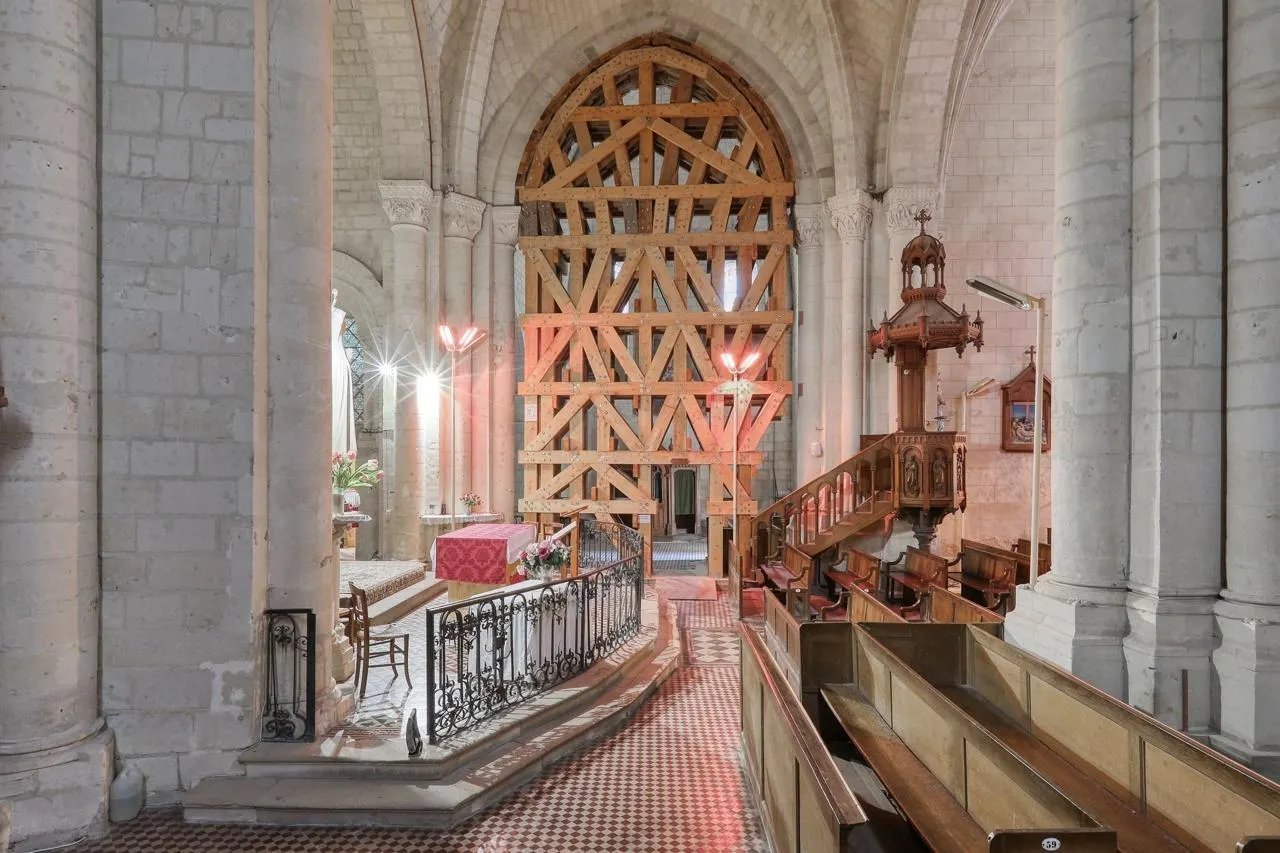 Fragilisé au fil des siècles, le monument présente aujourd’hui d’importantes fissures apparentes, à l’intérieur mais aussi à l’extérieur du site religieux. En effet, indique la mission dans son communiqué cinq jauges Saugnac de type G6 sont posées le 8 avril 2002 sur les piles sud-est et sud-ouest de la croisée. La pose des témoins donne lieu à des observations jusqu’au 20 septembre 2002. Le bureau d’étude préconise de fermer l’édifice, de poser des jauges supplémentaires et de poursuivre leur surveillance pendant 4 mois minimum. Les résultats conduisent à la mise sous l’étaiement de l’arc-doubleau sud de la croisée en 2003. Cette poussée de la charpente de la sacristie, et la présence d’une importante fissure sont déjà constatées en 1953 et des consolidations au ciment ont eu lieu en 1960.Â