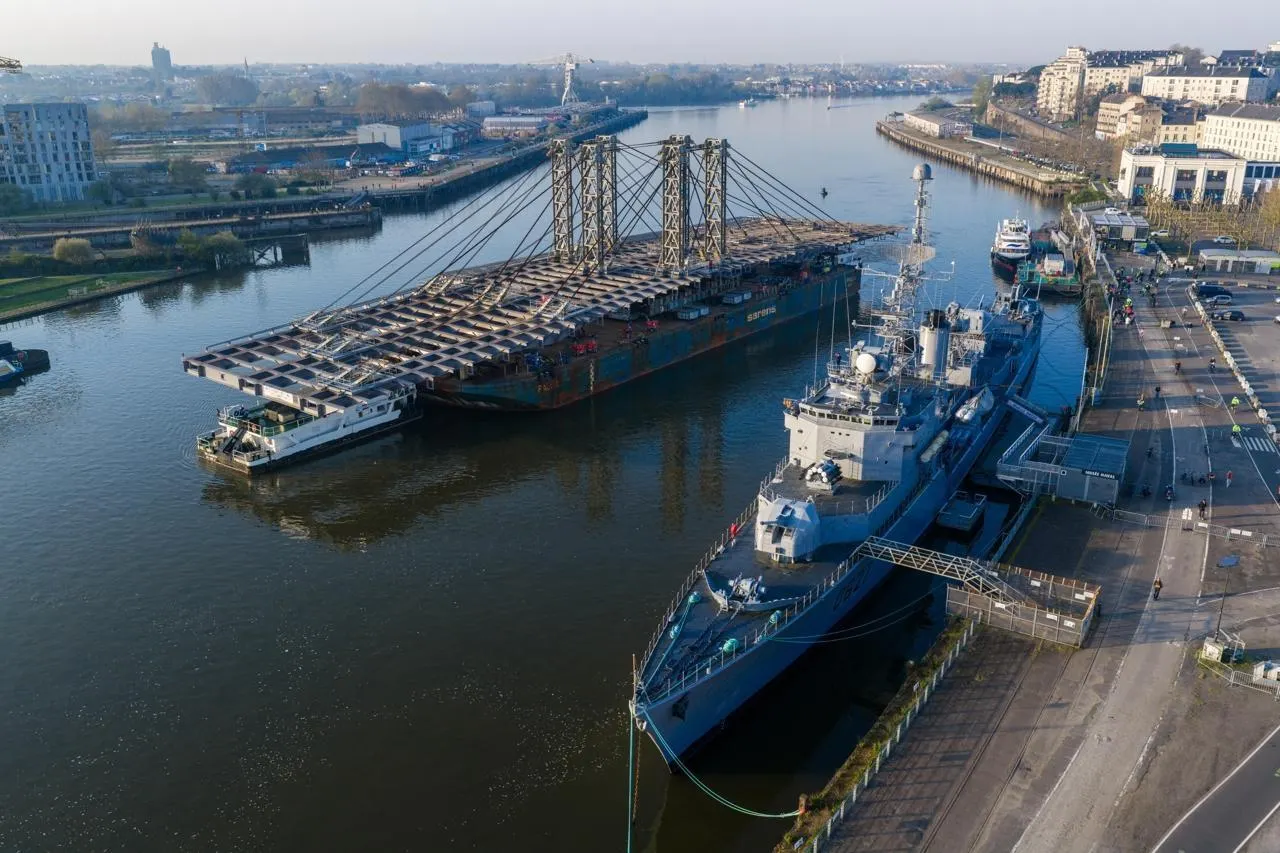 Mardi 24 mars, l’opération d’arrimage de l’énorme structure du tablier au pont Anne-de-Bretagne, à Nantes, qui promet d’être spectaculaire, a commencé tôt dans la matinée, où le tablier vogue sur la Loire jusqu’à sa destination finale. Cette opération va durer plusieurs jours.