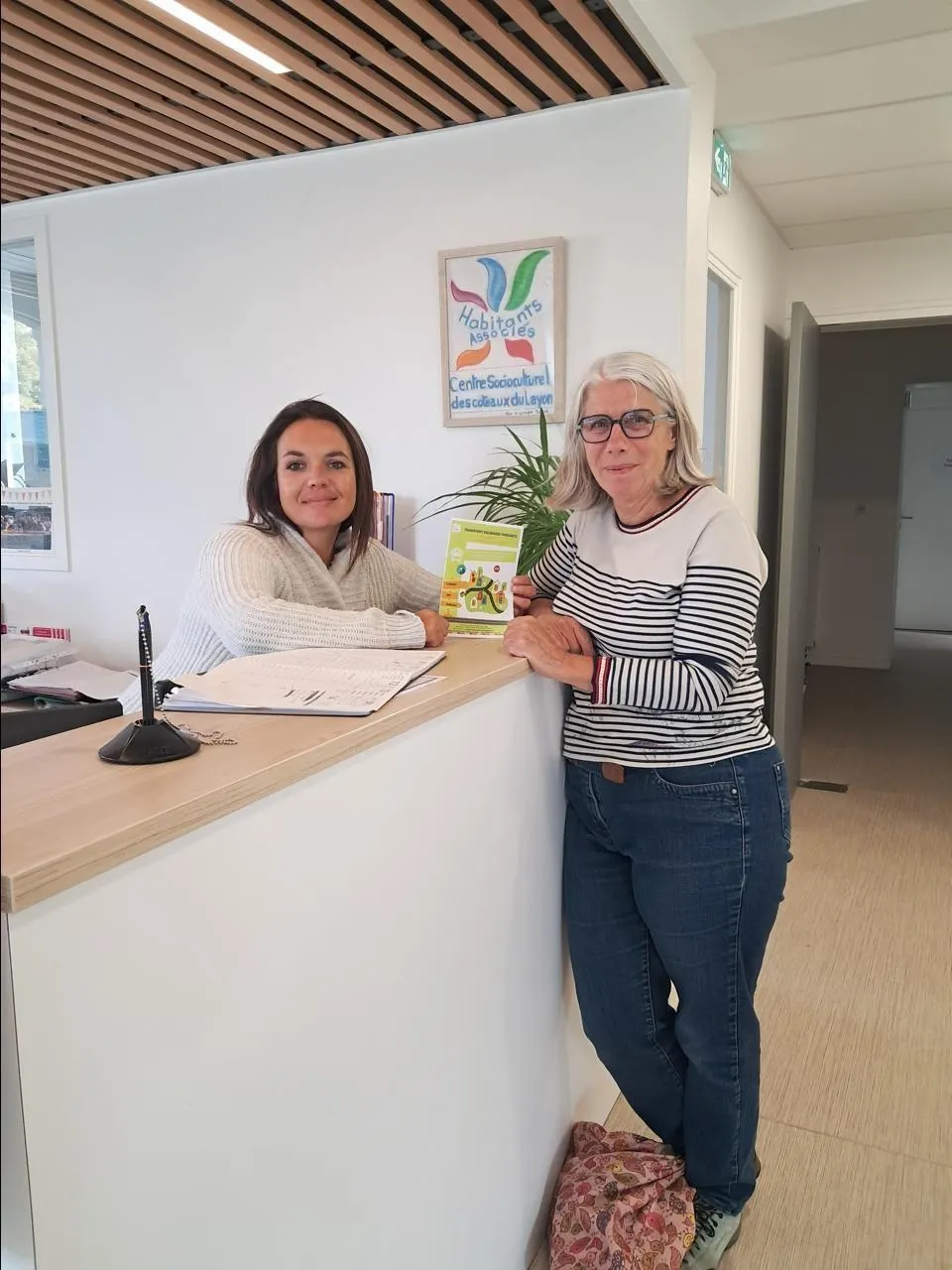 Audrey Tusseau, chargée d’accueil et d’accompagnement de projets d’habitants, et Magalie Queru, bénévole au transport solidaire. © CO