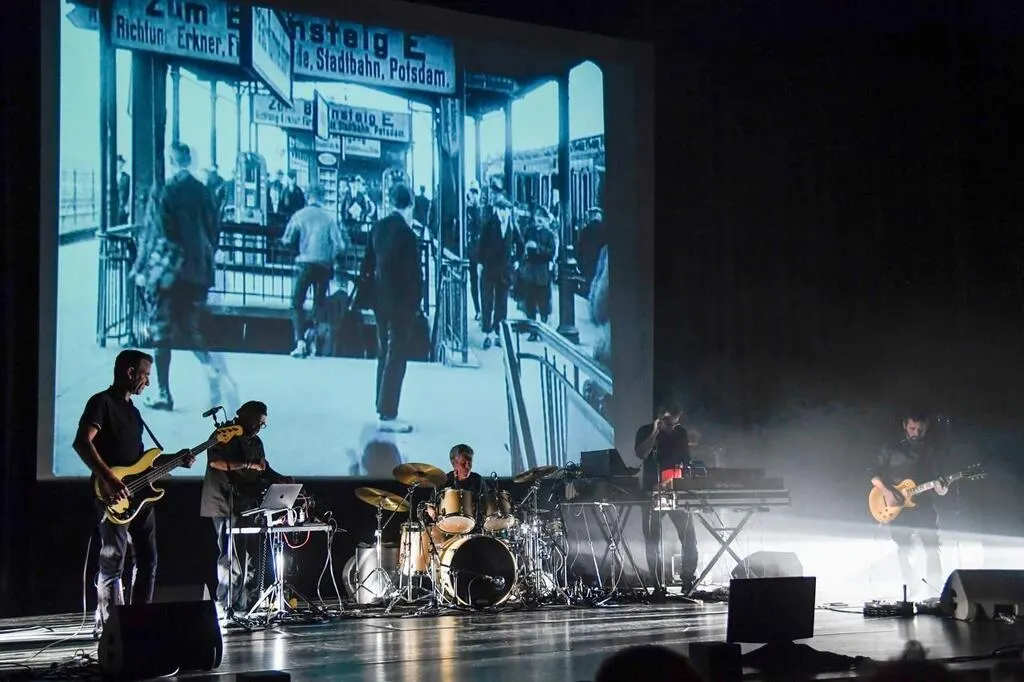 Saint-Barthélemy-d’Anjou, le 4 octobre 2024. Dix ans après sa création pour le festival Premiers plans, le ciné-concert imaginé par les Angevins de Zenzile autour du film de Walter Ruttmann, réalisé en 1927, est toujours aussi saisissant et fascinant. © LAURENT COMBET