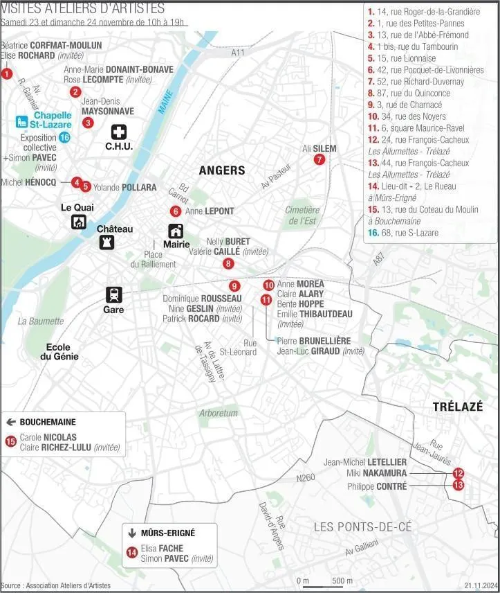 Ils sont fin prêts à recevoir le public. Briqués, rangés, sans y perdre leur âme, les Ateliers d’artistes ouvrent leurs portes ce week-end à Angers et dans l’agglo, à Bouchemaine, Mûrs-Erigné et Trélazé. Le rendez-vous est attendu à chaque fois de pied ferme par les visiteurs, toujours friands de ces ...