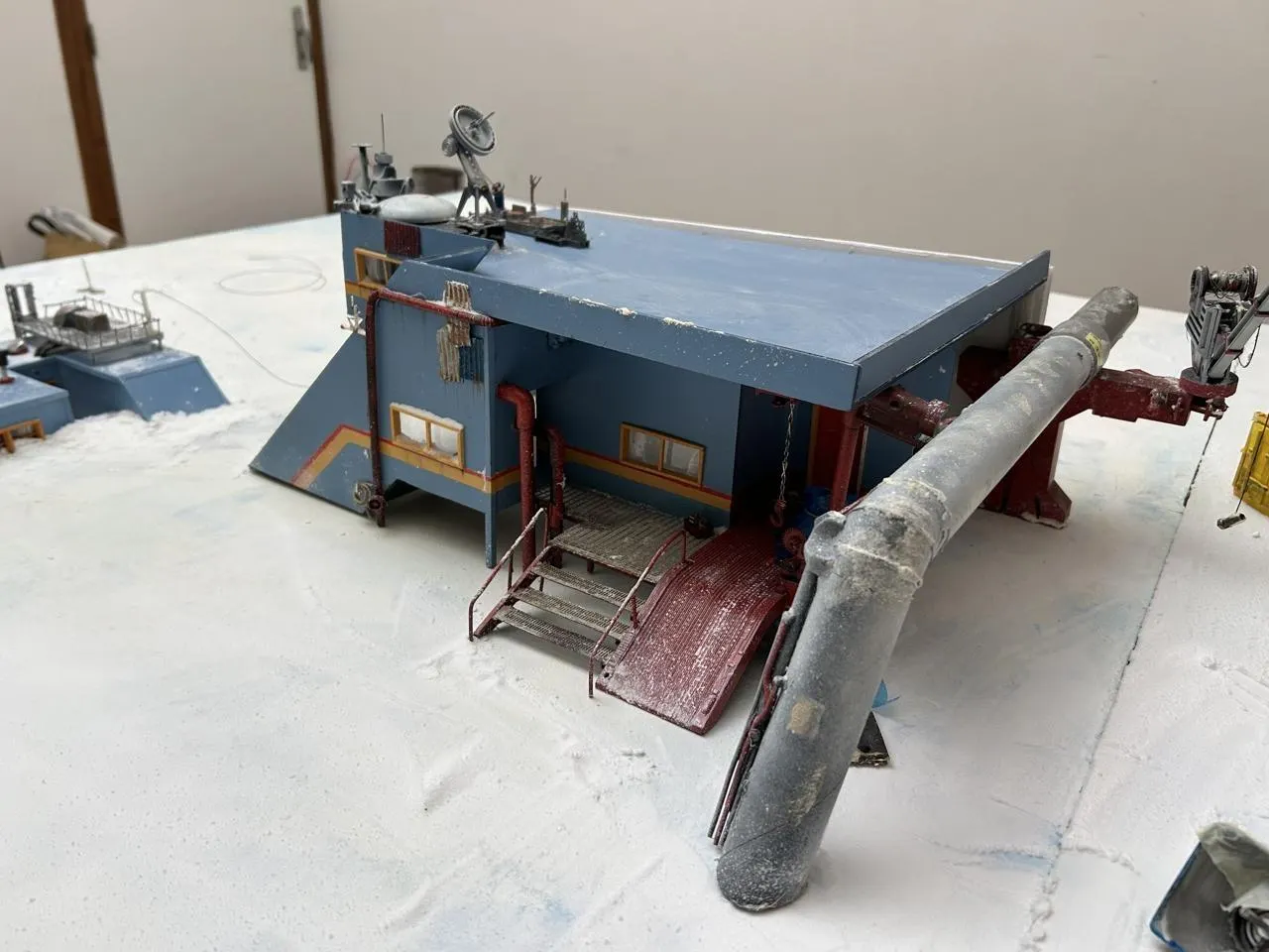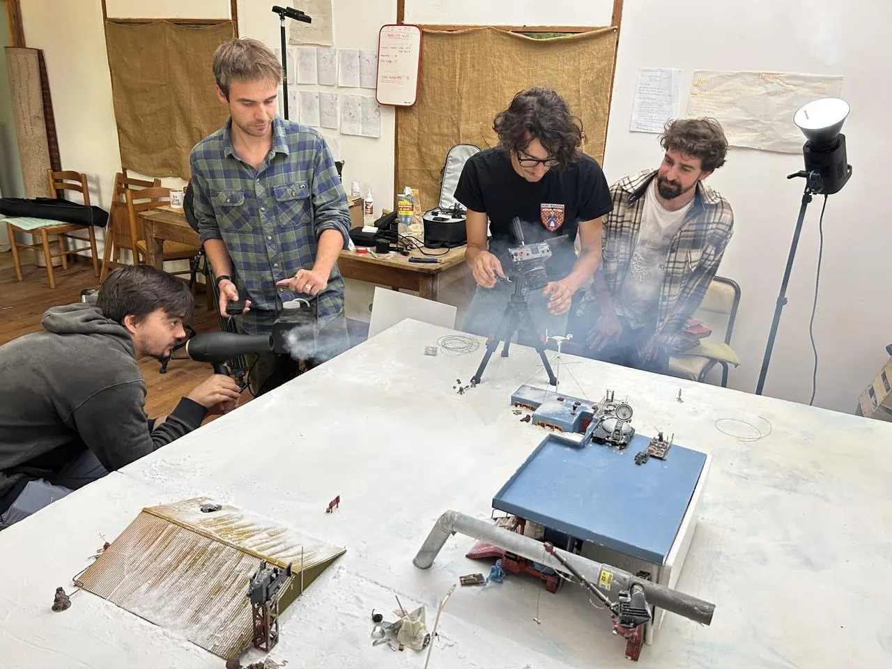Gée, le 21 août 2025. En plein tournage des effets spéciaux pour le film « No signal » : un sèche-cheveux et un peu de fumée pour simuler la tempête qui fait rage sur la base scientifique en Antarctique. © CO - Agathe LE NUEFF