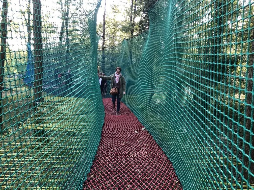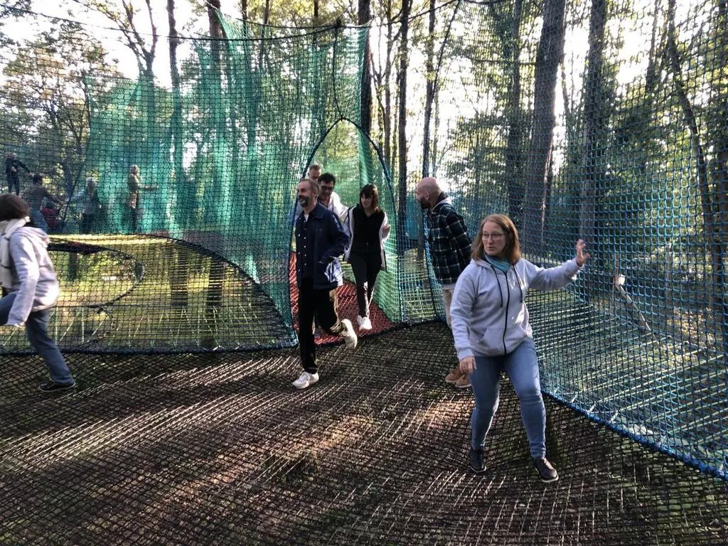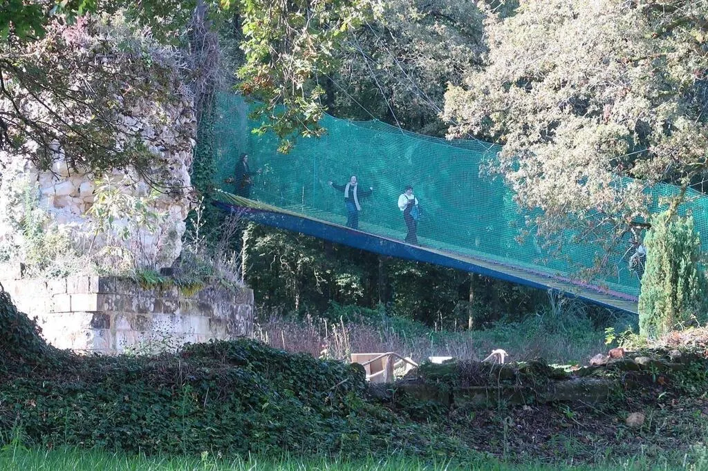 Trois hectares au beau milieu d’un massif forestier, les vestiges d’une maison forte médiévale, de vastes filets tendus entre les arbres au-dessus du sol… On pourrait penser qu’il n’en fallait pas davantage pour créer le site ...