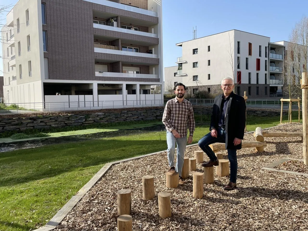 La ZAC La Monnaie est en passe d’être terminée. Malgré sa densité, ce nouveau quartier fait la part belle au végétal. La coulée verte centrale est achevée.
