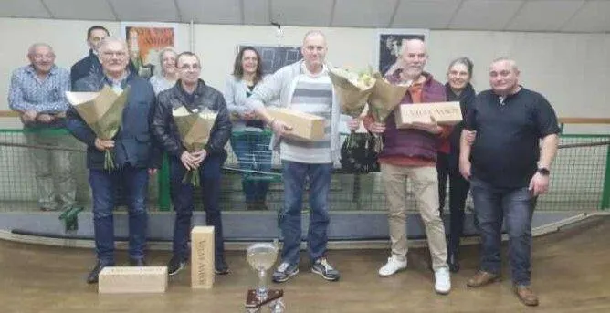 Philippe Landelle et Laurent Botteau, de la Jeanne-d’Arc de Seiches, ont remporté la première édition du challenge Elisa-Amiot, devant Bruno Pithon et Jean-Luc Lachaise, de l’Union-Comète de Beaufort-en-Vallée, au terme d’une finale très disputée et serrée jusqu’au bout grâce à deux belles équipes. Au total, 86 équipes ont participé aux compétitions. Chacun a pu regretter l’absence du président Tony Lô, dynamique porteur de ce projet, actuellement hospitalisé. Les vainqueurs (à droite) à côté du vice président Pascal Cousin, lequel a tenu à remercier participants et donateurs. © CO