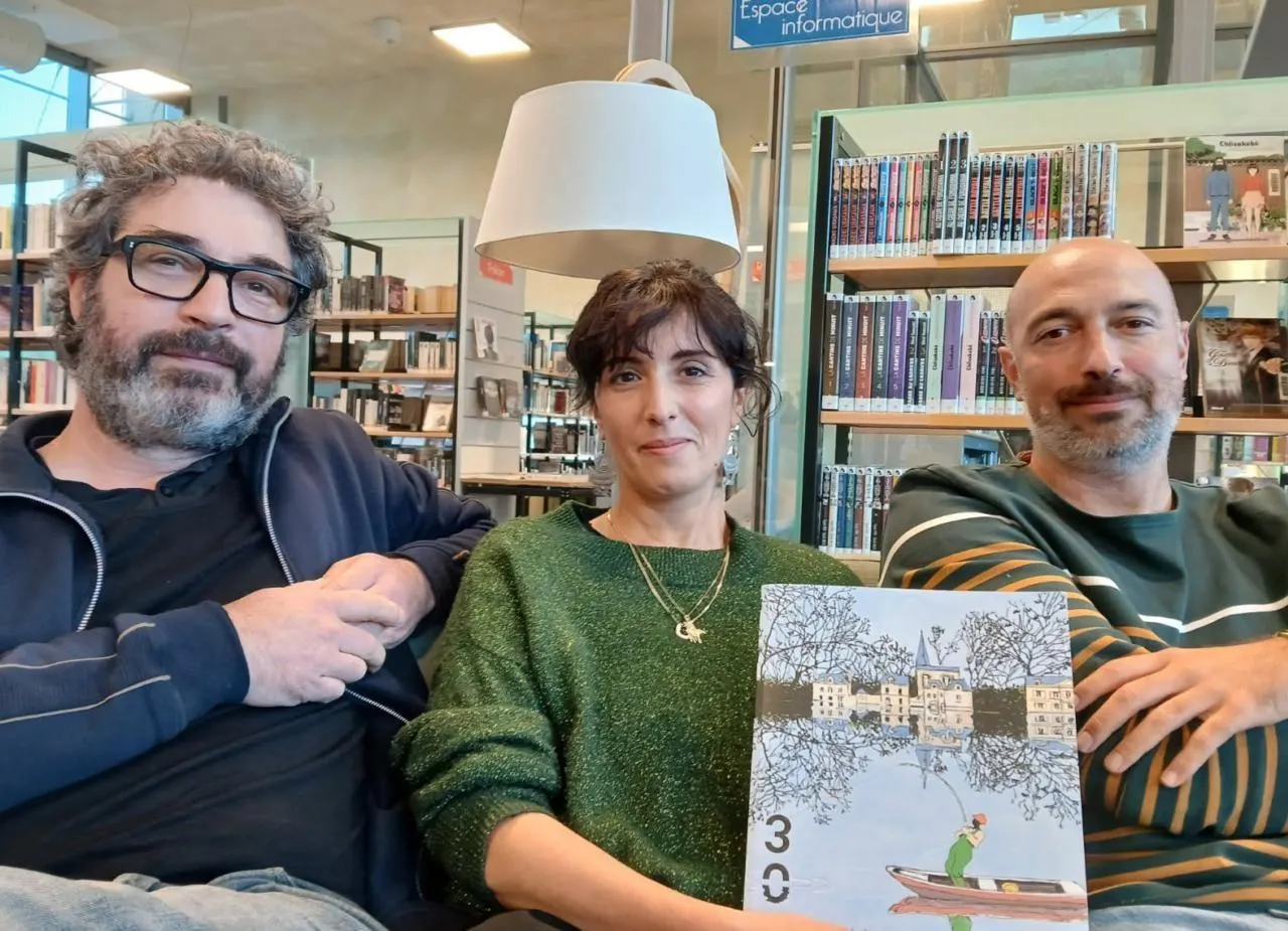 Gwen de Bonneval, dessinateur et directeur éditorial, la dessinatrice Mélanie Allag et Sébastien Rochard, journaliste. © Ouest-France