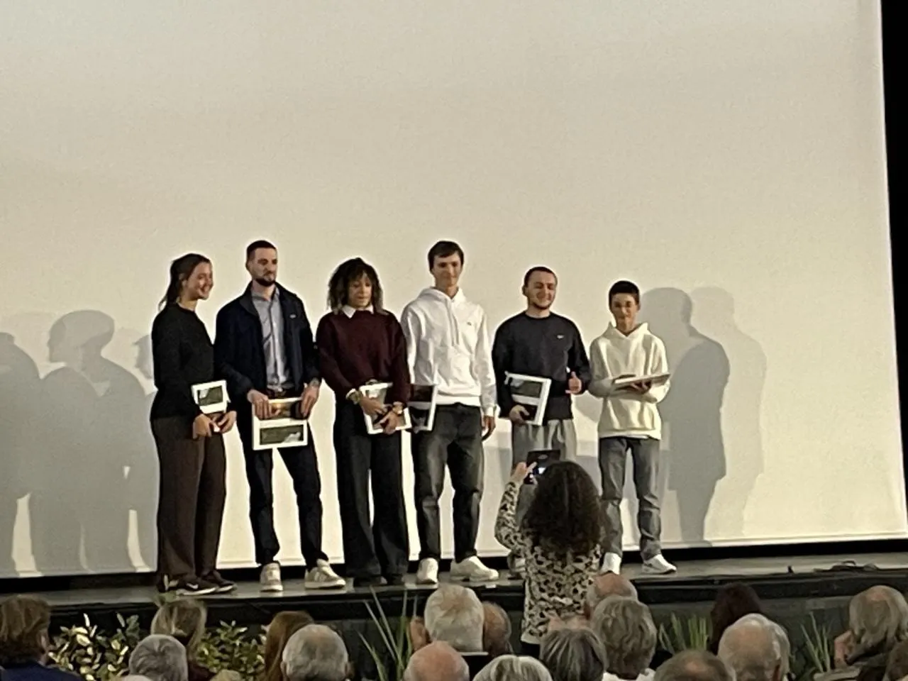 Les 35 élus au conseil municipal des jeunes, accompagnés par l’adjointe Laurence Brossard, ont créé un hymne municipal et l’ont chanté lors de cette soirée des vÅ“ux. © CO