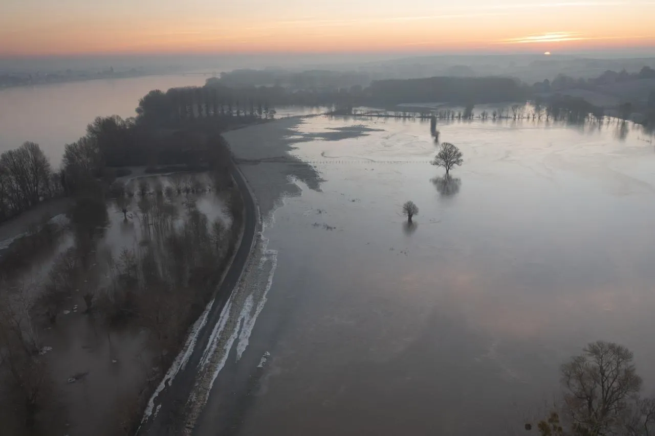 La Loire sortait de son lit en janvier dernier, ici au lever du jour à Blaison-Saint-Sulpice. © Archives CO – Josselin CLAIR