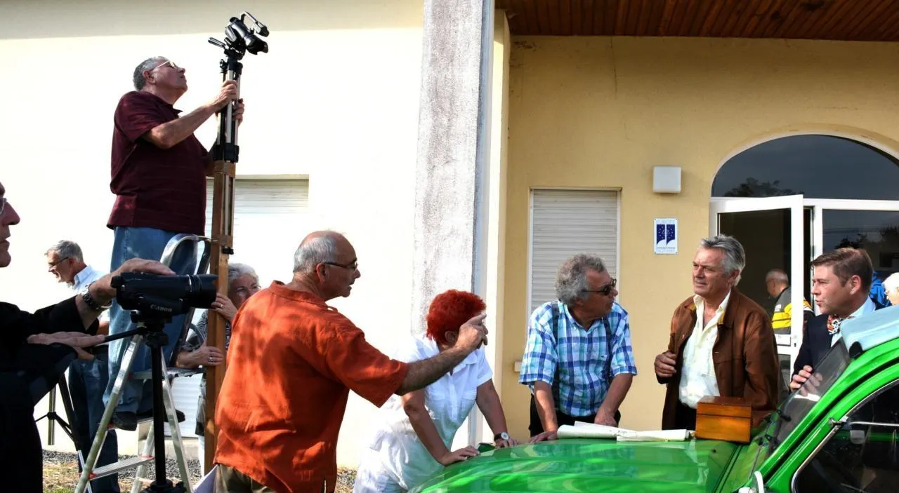 Claude Jouy, en orange, réalisateur, lors du tournage d’un précédent film. © CO