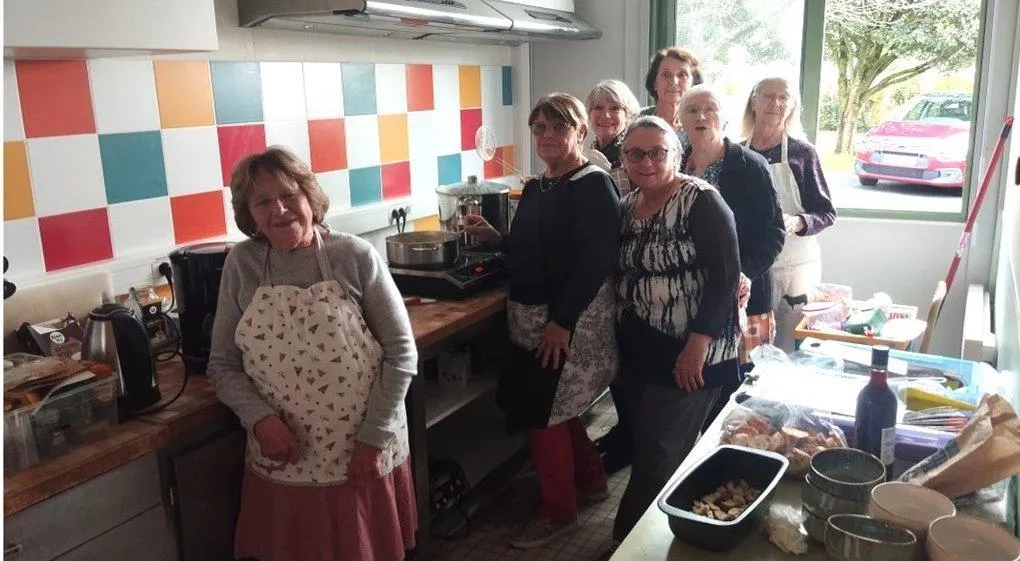 Le principe est simple : un thème de repas est choisi, l’association achète tout ce qu’il faut, de l’apéritif au dessert. Les cuisinières œuvrent toute la matinée et c’est ensuite le moment de la dégustation, avec les conjoints, chacun participant au repas pour une quinzaine d’euros.