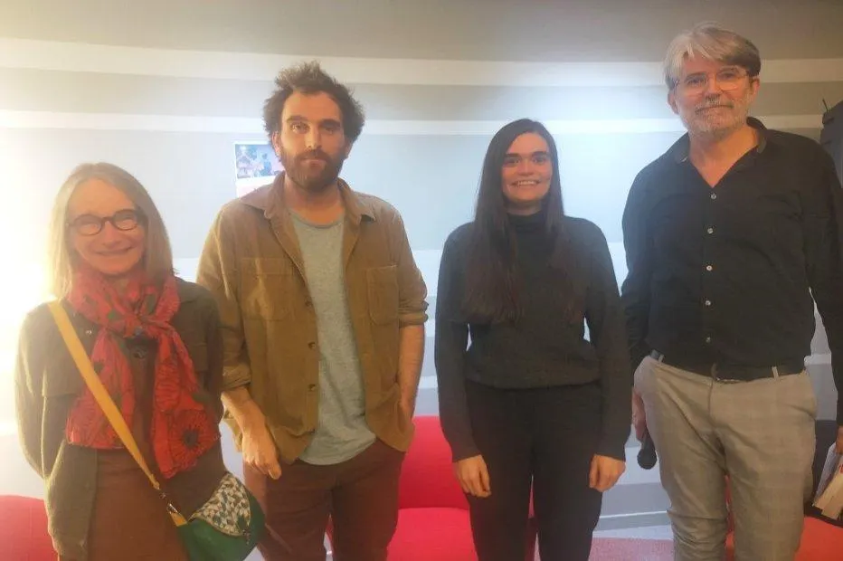 Myriam Béranger, Thibault Daelman, Manon Jouniaux et Guénaël Boutouillet lors d’une rencontre à la médiathèque de Saint-Mathurin-sur-Loire. © Ouest-France