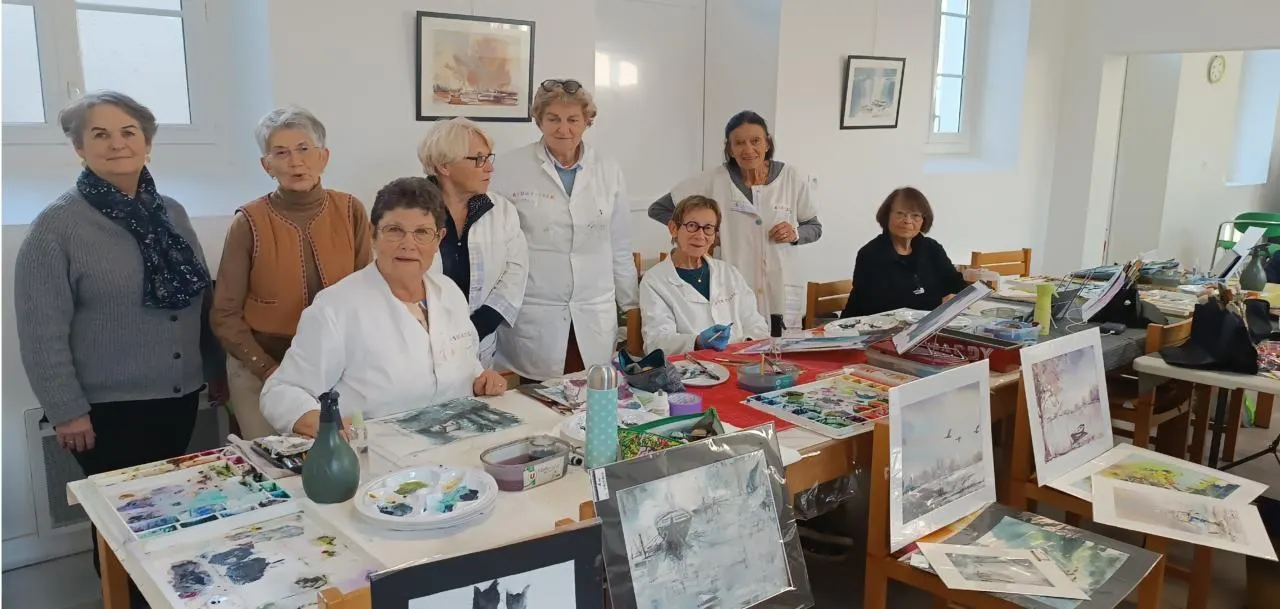 Les aquarellistes finalisent leurs œuvres pour la vente. © CO