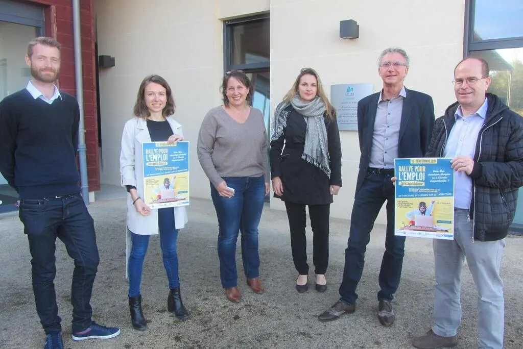 L’ensemble des partenaires organisateurs du Rallye pour l’emploi : Mathieu Bellayer pour Coorace ; Julie Grégoire pour la CCLLA ; Frédérique Savarieau pour Initiatives emploi ; Annaïg Quemeneur pour Alise ; Marc Schmitter pour la CCLLA,et Patrice Athimon pour Alise. © Ouest-France