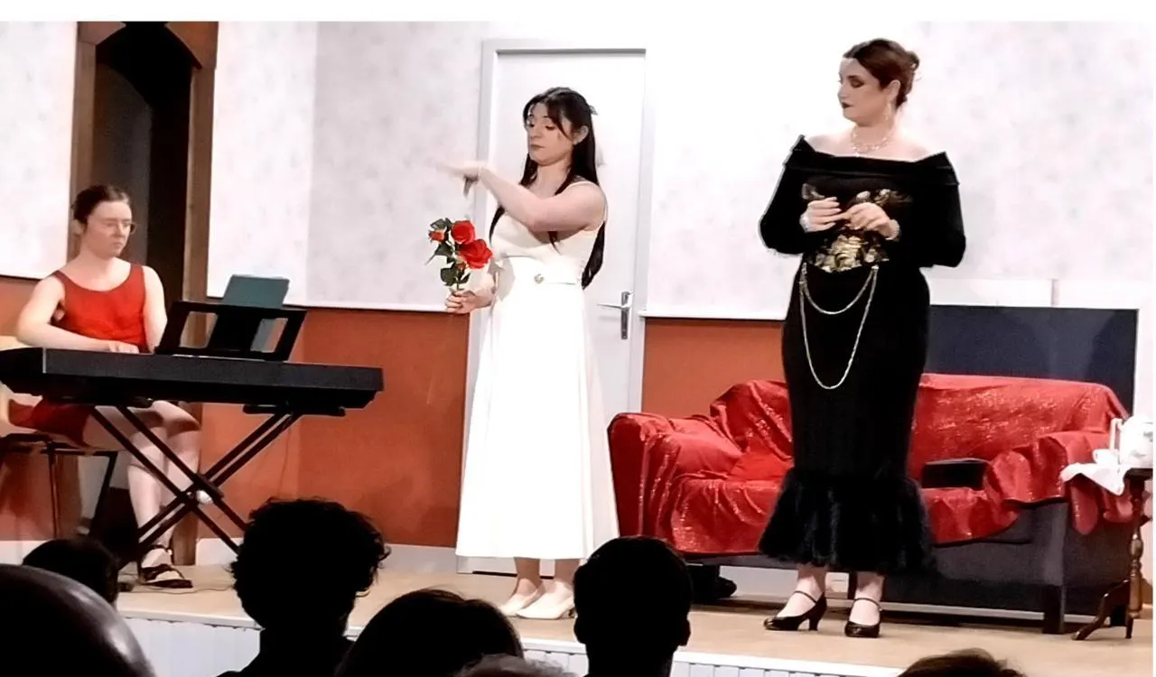 Organisé par la bibliothèque de Loiré, un théâtre musical a été joué, samedi, par la compagnie Les Trouvailles Lyriques devant une trentaine de personnes. La pièce, « Notre Futur », était de Georges Feydeau ; l’adaptation et la mise en scène étant réalisées par Lucie Le Blanc. Cette jeune compagnie est dédiée à la création de projets mêlant différents arts de la scène, notamment le théâtre et le chant lyrique. Ses trois artistes (de gauche à droite :Tahoe Brochet, Lucie Leblanc et Katia Labarre) seront au Festival d’Avignon 2026. © CO