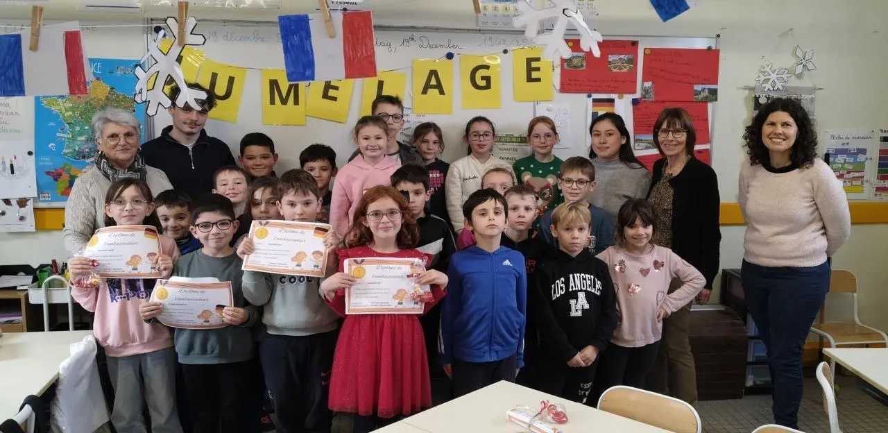 Ainsi, Gloria, Antoine, Lubin, Émile, Leo, Alice, Julia, Mason, Juliette, Lilian, Edanne, Lea, Mila, Calie, Erwan, Roch, Issa, Louise, Salomé, Fleur, Lou, Elie, Maxime, Gabin et Manon ont tous participé à l’envoi de dessins et d’une lettre expliquant la fête de Noël à leurs correspondants allemands.