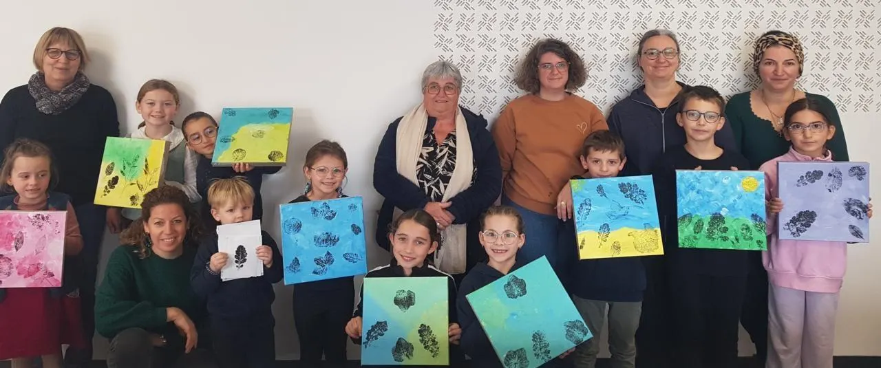 Sous les bons conseils de l’artiste plasticienne née à Bogota (Colombie), spécialisée dans les techniques mixtes comme la gravure ou la broderie, les enfants, parents et grands-parents ont pu tout d’abord peindre leur toile puis venir y ajouter des impressions à base d’encre et de végétaux.