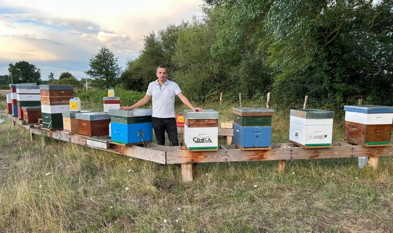 Yoan Mercier, apiculteur amateur, développe son rucher grâce au mécénat d’entreprise. © CO