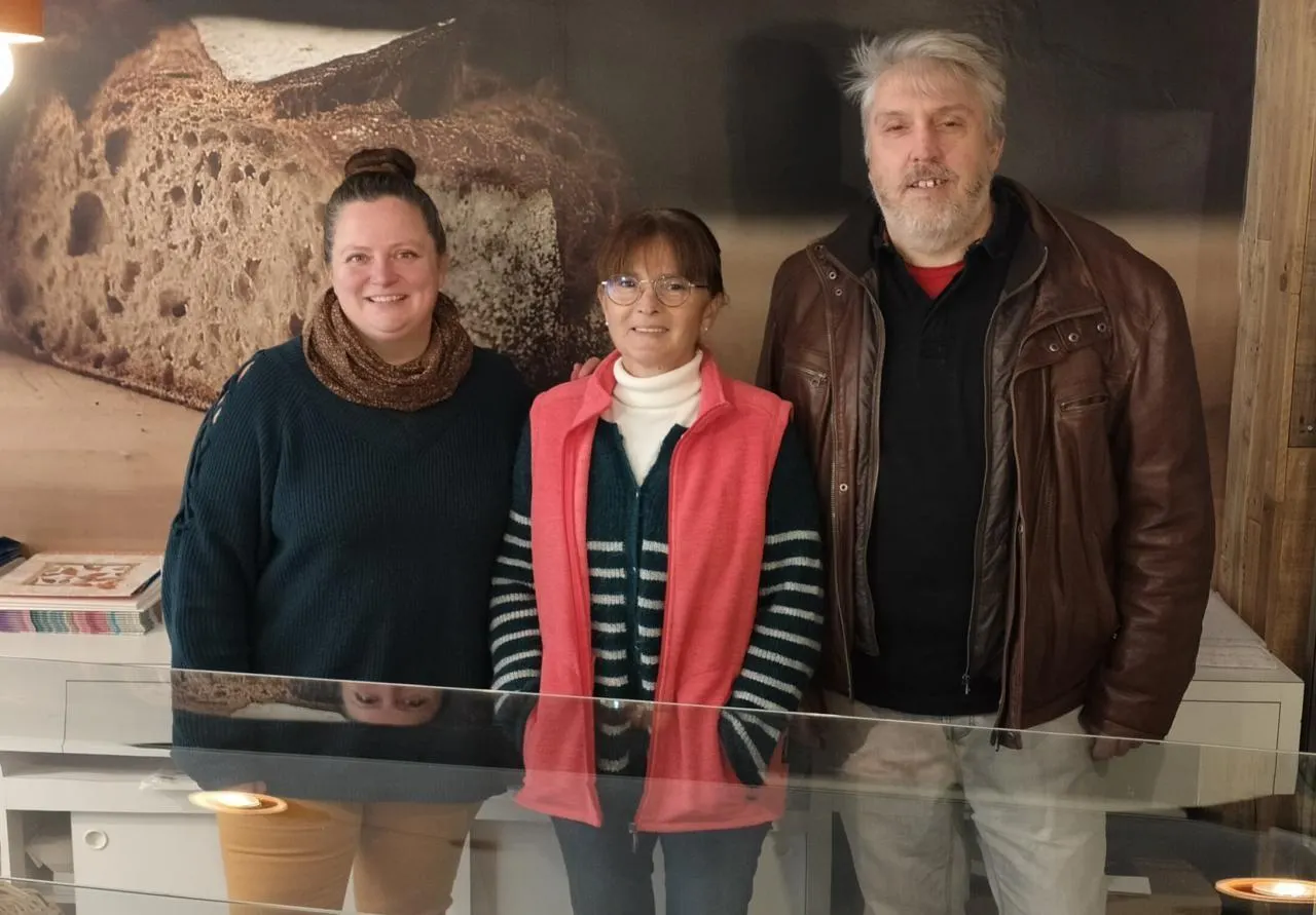 Clara Prioux entourée de Christine et Alexis Thépénier, les repreneurs et boulangers à Brain-sur-Allonnes. © CO
