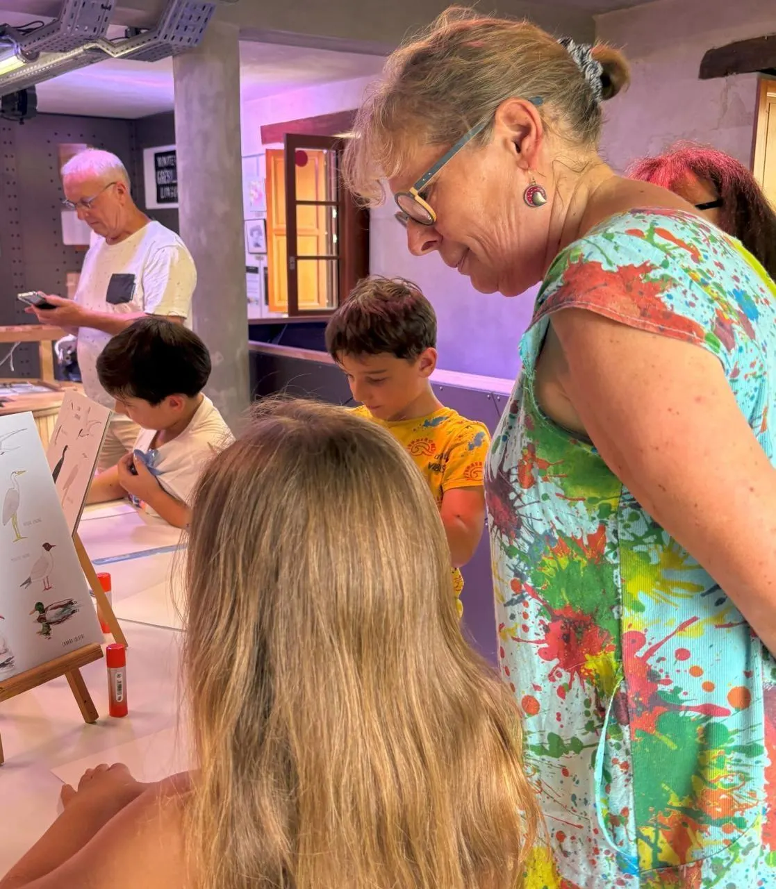 Pour l’occasion, Nathalie Gruben, qui présentait l’« Atelier de Naëhl », à l’exposition de peinture Eclat d’arts au Moulin, est venue à la rencontre du public pour animer un atelier original autour des oiseaux de la Loire. À partir de photographies, petits et grands ont été invités à observer attentivement et à reproduire au crayon et en couleur différentes espèces locales : hérons cendrés, sternes, marins-pêcheurs…