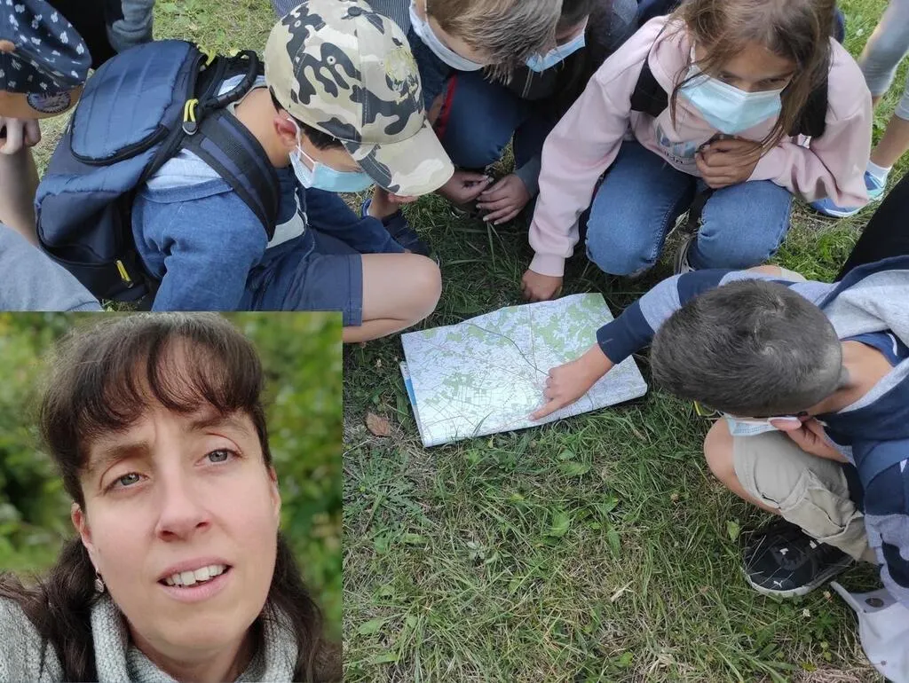 Audrey Foucron (en médaillon) a emmené ses élèves en classe nature sur les bords du Lathan. © CO
