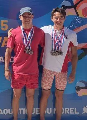 Lucas Nicolleau et Jessy Lee Eck, les deux nageurs longuéens médaillés au critérium national individuel. © ACL natation