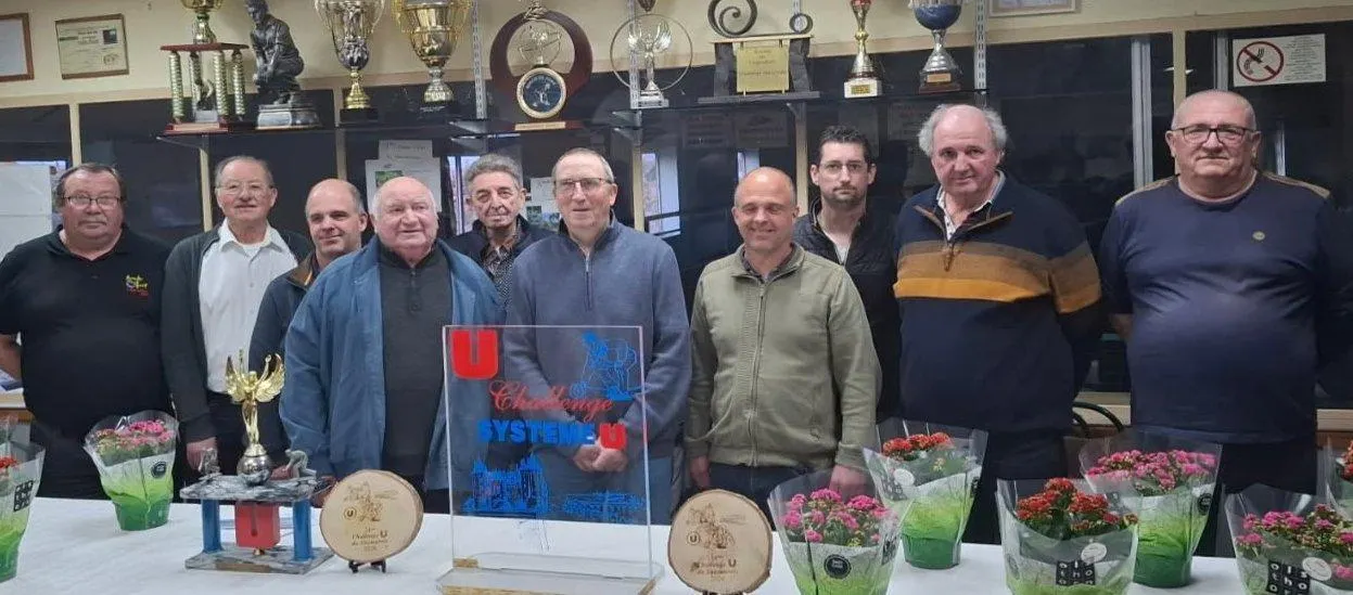 La finale du 34e challenge U, 3 contre 3, de la fédération du Saumurois s’est déroulée dans la 7e section. 101 équipes (303 joueurs) ont participé. Après avoir éliminé Eric Pavy, Thierry Monthais et Kevin Bouché (Saint-Lambert-des-Levées) 10 à 4 en demi-finale à la Fraternelle, Hervé Tixier, Patrick Sandrier et Cédric Tellerain (Chouzé-sur-Loire) se sont imposés en finale dimanche 8 mars à la société l’Agriculture à Longué 12 à 7 face à Jean-Claude Livache, Frédéric Desveaux et Jacky Livache (Concorde Longué). Ces derniers avaient battu Christophe Aubin, Jean Blot et Gilbert Montais (Martigné-Briand) 10 à 4 à la société l’Avenir dans l’autre demi-finale. © CO