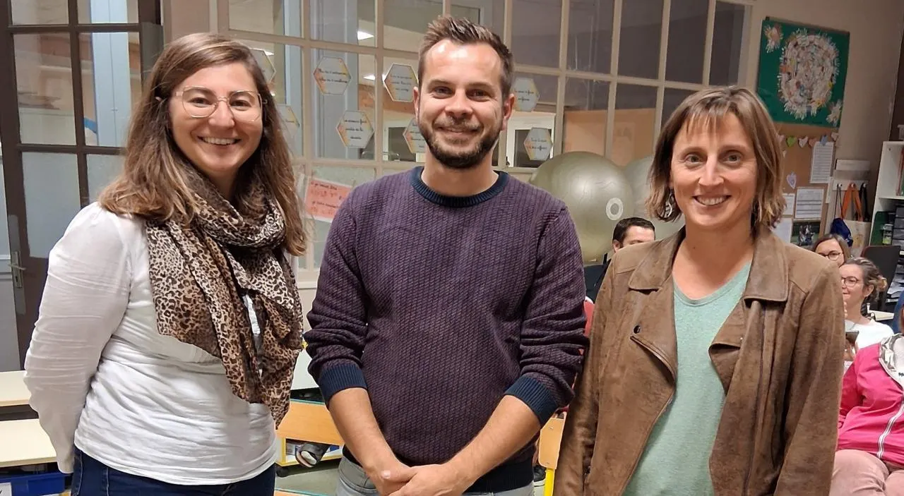 Hélène Remigereau, présidente de l’APL, Romain Beaupère, vice-président de l’AGEC et Lucie Dersoir, cheffe d’établissement de l’école Saint-François. © CO