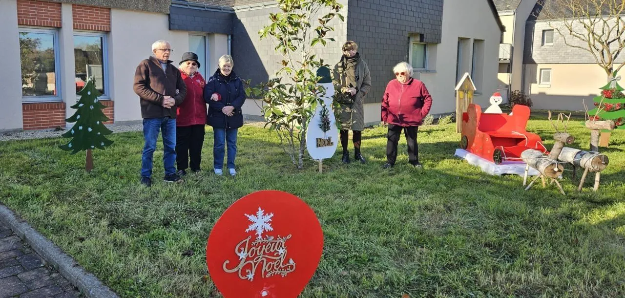 Les décors de jour ont été plantés à la résidence du Val de l’Isle, avec un traîneau tout neuf, installés par Christian et Annette Videau, Annie Fieffe et Christine Capron, accompagnés d’une résidente, Mme Panhelleux. © CO
