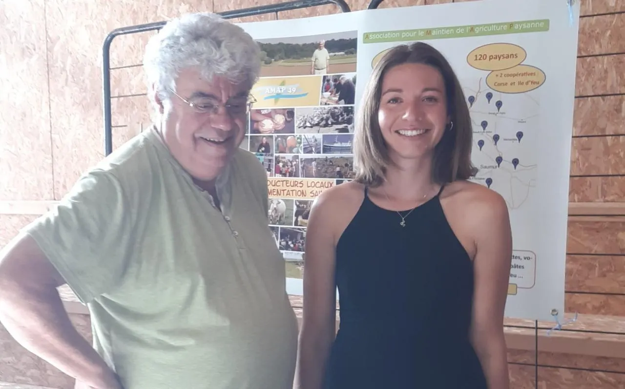 Yves Bouchet, coprésident, et Flore Allaès, jeune administratrice de l’Amap, présentant les portes ouvertes lors du récent forum des associations. © Ouest-France