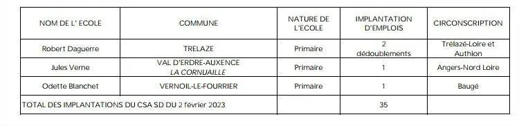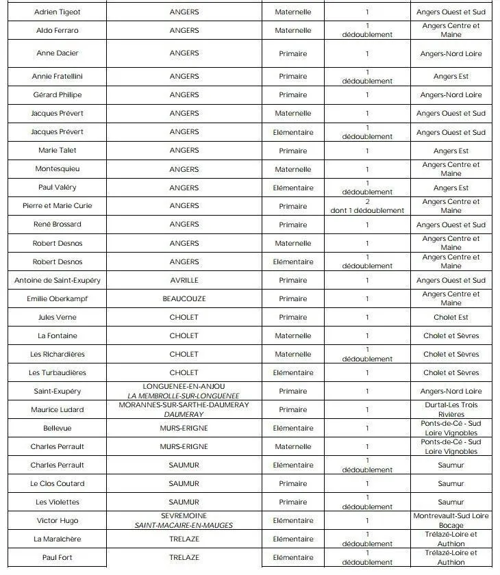 Les ouvertures de classes à la rentrée de septembre 2023 en Maine-et-Loire. INSPECTION ACADEMIQUE