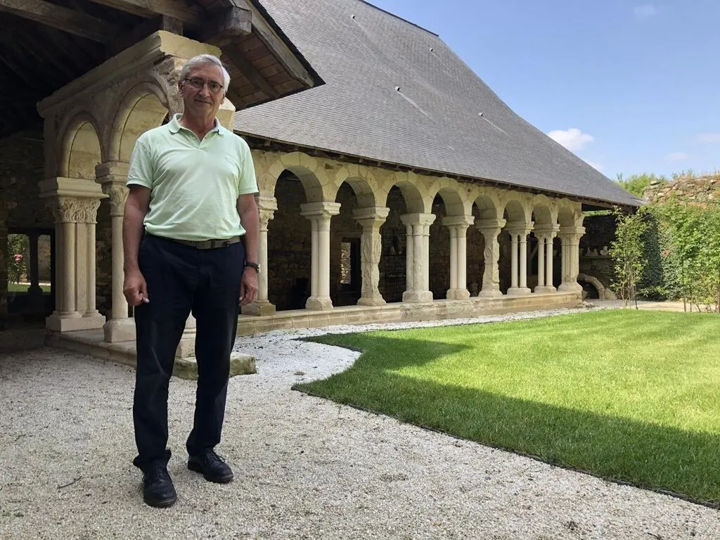 Christophe Le Bret devant le cloître restauré. © Ouest-France