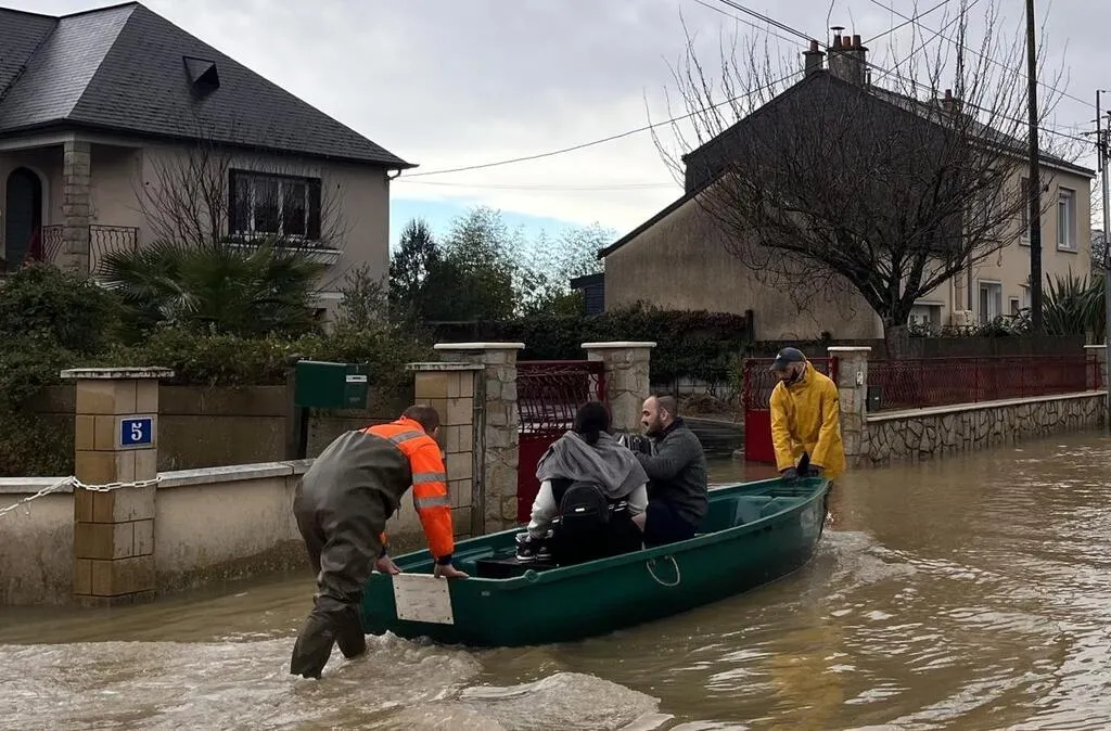 Dans le secteur de Segré (Maine-et-Loire) des familles ont dû quitter leur logement en barque pour se mettre à l’abri des inondations. © Ouest-France