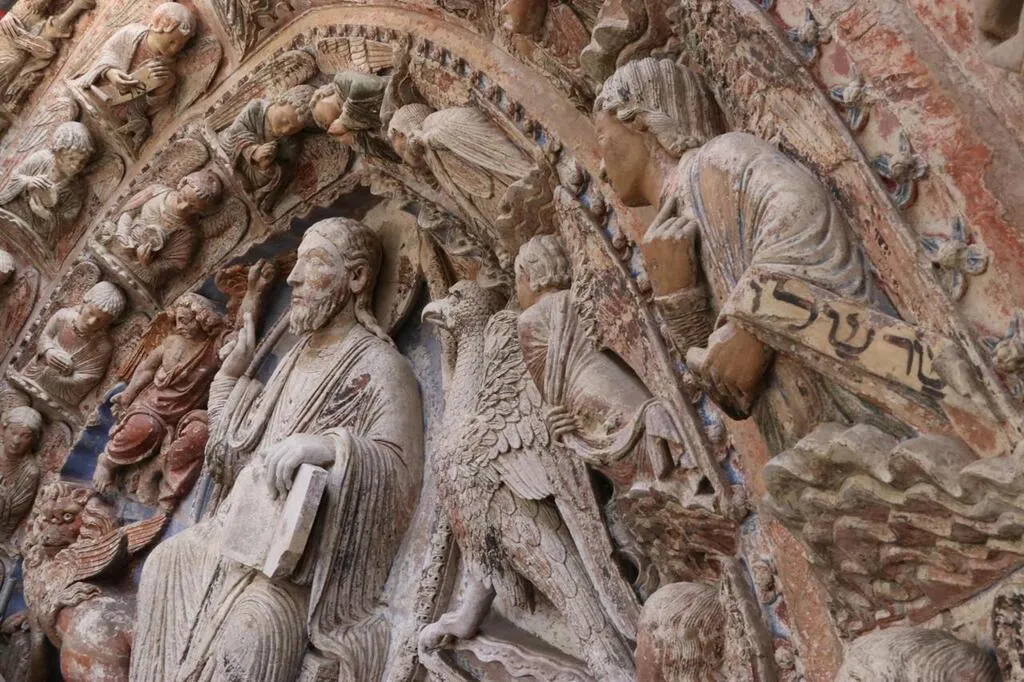 Ce portail permettait de protéger des polychromies extraordinaires, datant du XIIe et du XVIIe siècles. Ces sculptures, fortement endommagées, ...