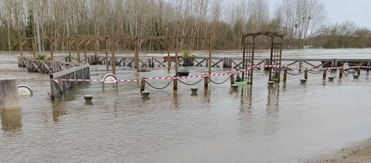 Inexorablement ces derniers jours la Loire a envahi le quai de Loire à Saint-Florent-le-Vieil, si bien que l’accès, même pédestre à la Maison Julien-Gracq ne se fait plus à pied sec. Quant à la terrasse du restaurant de la Gabelle, dominant le fleuve, si fréquentée en été lors des Podiums florentais notamment, c’est le service « eau courante » gratuit ! L’accès au restaurant lui-même restait possible hier encore, d’autant plus qu’après des jours et des nuits de montées spectaculaires, le niveau du fleuve s’avérait stabilisé ce vendredi 20 février, à 5,25 m à l’échelle de crue.