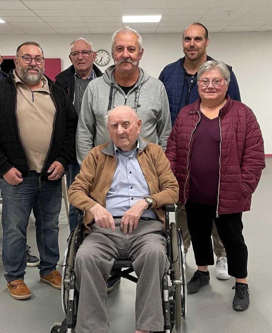 André Pellerin, entouré des membres du bureau de la société, à l’occasion de ses 100 ans, en 2023. © Document remis