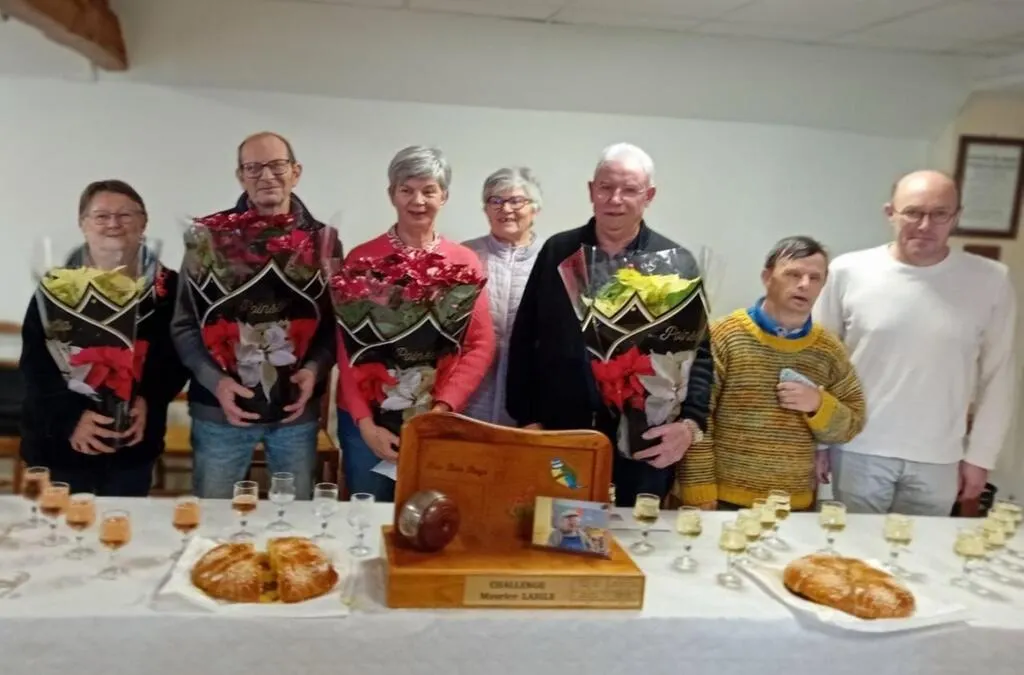 La finale du 8e challenge Maurice-Laigle s’est déroulée samedi 11 janvier à la société Le Loiron. L’équipe Sylvette Kipper et Claude Girard a battu le binôme composé de Pascal Richard et Mme Lequeux, par 12 à 4. La famille Laigle a récompensé les participants et offert la galette. Actuellement se joue le concours du Carnaval, dont la finale est prévue samedi 1er février. Le concours de belote ouvert aux sociétaires se déroulera samedi après-midi 25 janvier. © CO