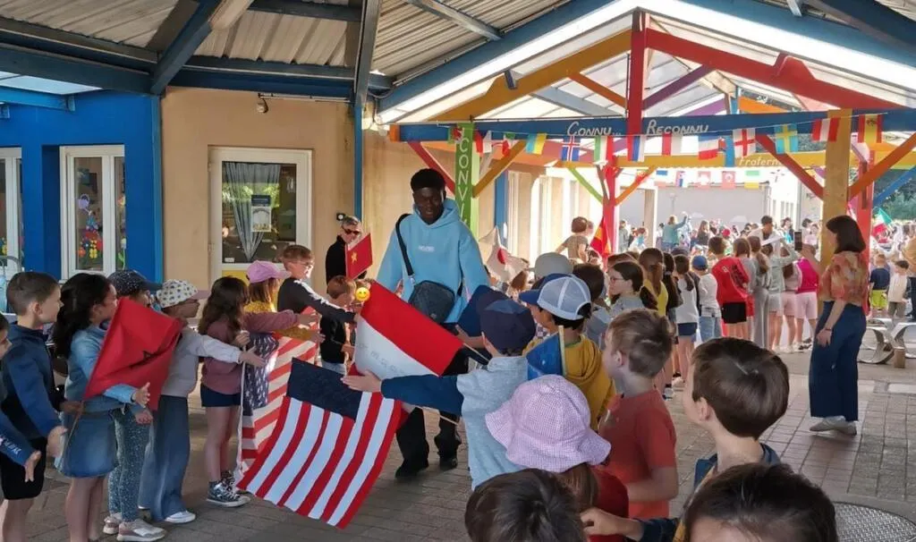 En matinée, les élèves, leurs familles ainsi que toute la communauté éducative ont accueilli, par une haie d’honneur, dix étudiants de diverses nationalités (Vietnam, Chine, Amérique, Madagascar, Corée, Togo, Congo…). Les étudiants étaient ensuite répartis dans les classes afin de partager leur culture à travers des diaporamas, des chants et diverses activités.